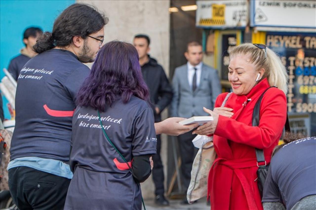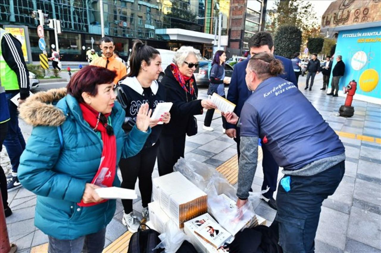 İzmir Büyükşehir Belediyesi, bugün kentin 16 noktasında 10 binin üzerinde Nutuk kitabını İzmirliler ile buluşturdu. İzmir Büyükşehir Belediye Başkanı Tunç Soyer, Cumhuriyet Meydanı’ndaki dağıtıma katıldı. Başkan Soyer, “İzmir’de Nutuk’u okumayan genç kalmayacak” dedi.