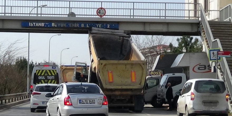 Damperi Bozuk Olan Kamyon Üstgeçide Takıldı