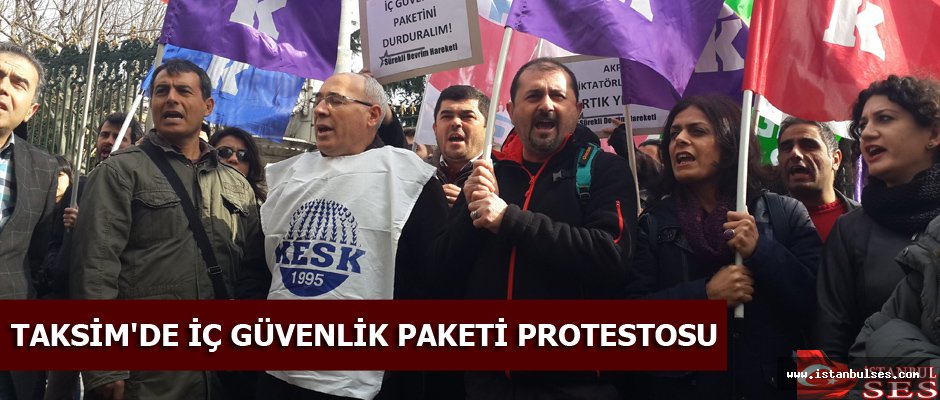KESK üyelerinden oluşan bir grup, Galatasaray Meydanı’nda bir araya gelerek iç güvenlik paketini protesto ederek oturma eylemi yaptı. Döviz taşıyan grup slogan attı. Polis gruba karşı yoğun güvenlik önlemi aldı.