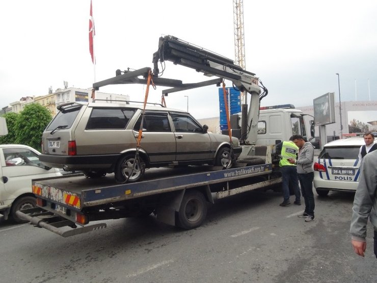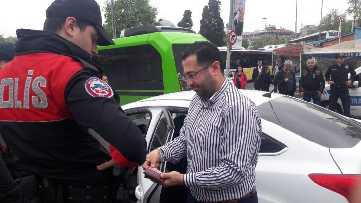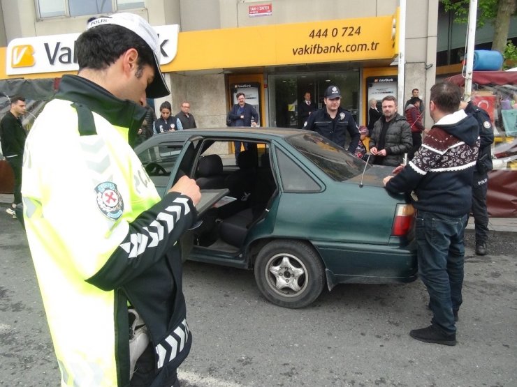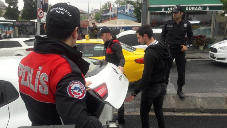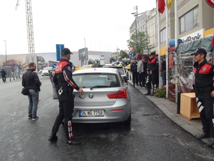 Taksim’de yapılan asayiş uygulamasında aracı bağlanan sürücüden ilginç tepki