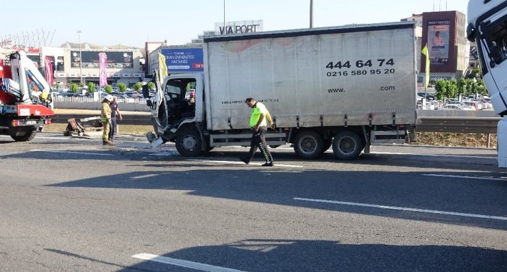 TEM’de 3 kamyon birbirine girdi, sürücü araç içinde sıkıştı