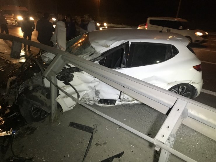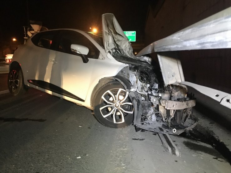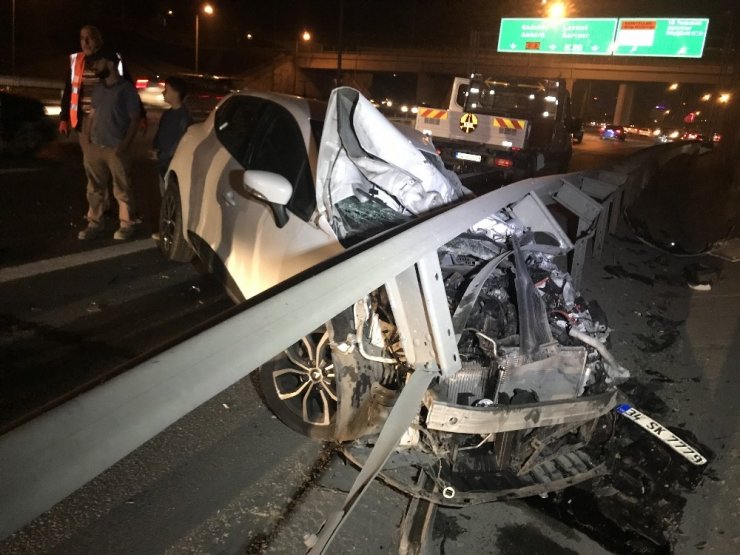 Hasdal TEM otoyolunda makas atarak ilerleyen otomobil sürücüsünün direksiyon hakimiyetini kaybetmesi sonucu kontrolden çıkarak başka bir otomobile çarptı. Çarpmanın etkisiyle savrulan otomobil bariyerlere ok gibi saplandı.