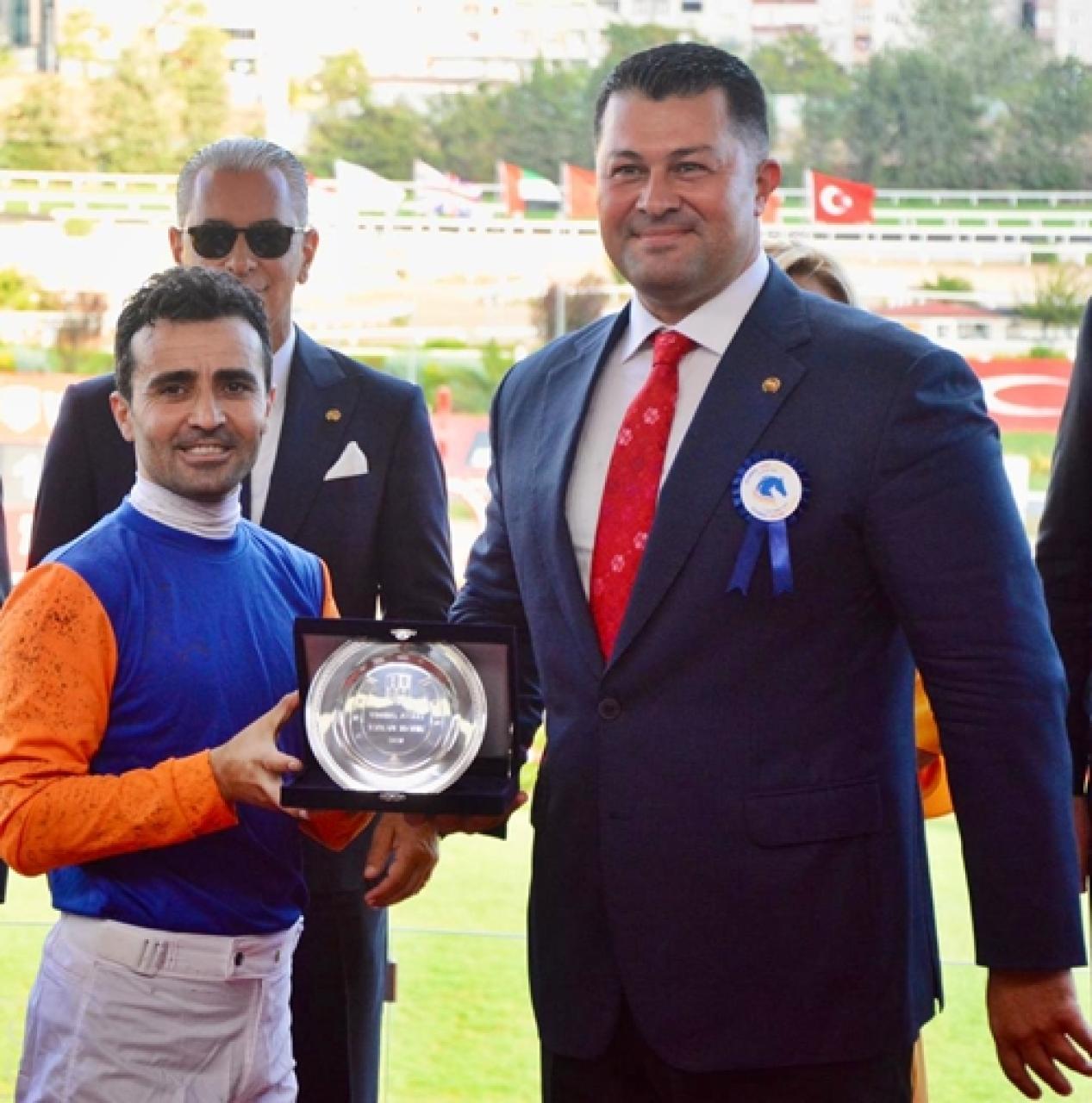 Kulübümüz Yönetim Kurulu Üyesi Halid Milli ise kazanan safkanın jokeyi Ahmet Çelik'e plaketini verdi.