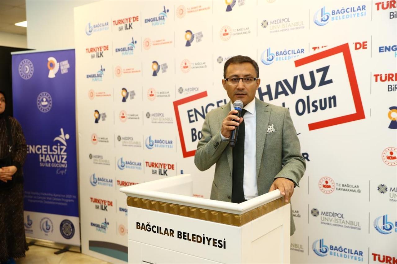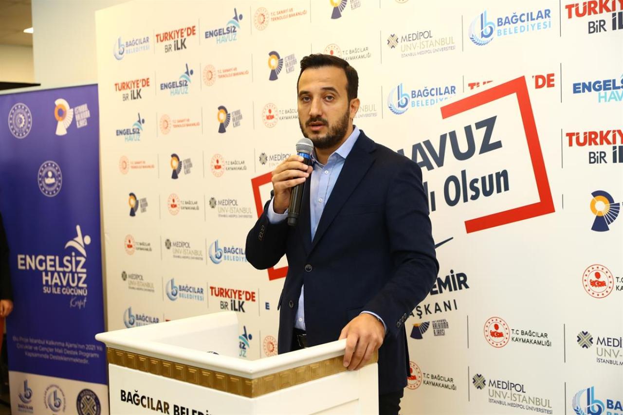 “2021 yılı Çocuklar ve Gençler Mali Destek Programı” kapsamında İstanbul Kalkınma Ajansı’nın desteğiyle Bağcılar Kaymakamlığı, Bağcılar Belediyesi ve Medipol Üniversitesi ortaklığıyla Türkiye’nin ilk duyu bütünleme temelli su içi terapi havuzunun lansmanı yapıldı. Engelsiz havuza dönüştürülen Kazım Karabekir Mahallesi’ndeki yüzme havuzunda düzenlenen lansman programına; Bağcılar Kaymakamı Abdullah Uçgun, Bağcılar Belediye Başkanı Abdullah Özdemir, AK Parti İlçe Başkanı Rüstüm Tüysüz ve engelli aileleri katıldı.