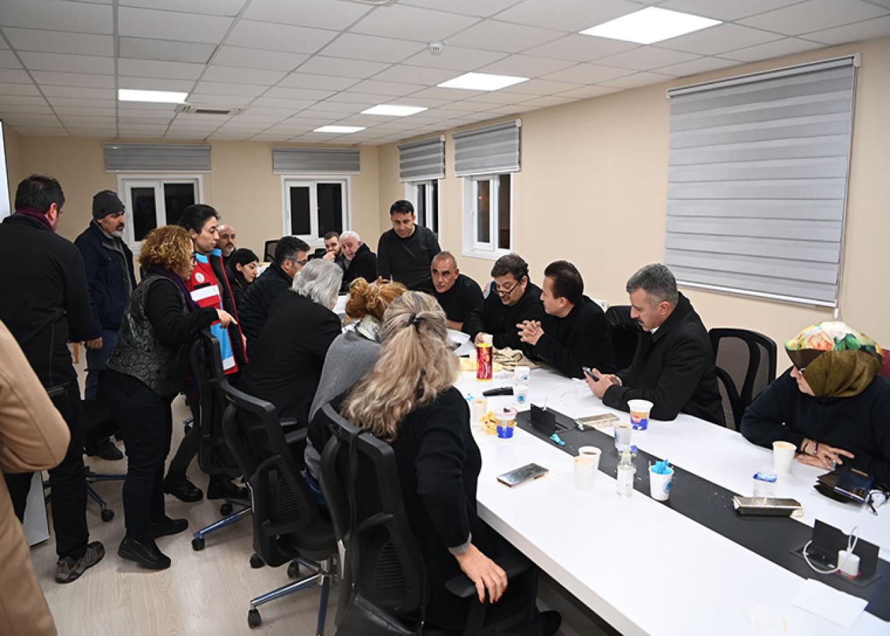 Gece saatlerine kadar süren toplantıda Türk Kızılay’ı Tuzla Şubesi ve Gönül Elleri Çarşısı aracılığı ile organize edilen yardım çalışması, bölgeye gönderilecek tırların organizasyonu, yine deprem bölgesine gönderilecek gönüllülerin ulaşım planlaması, deprem bölgesine gönderilen araçların ve personelin koordinasyonu konusunda görüşmeler yapıldı. Toplantı hakkında sosyal medya hesabı üzerinden açıklama yapan Tuzla Belediye Başkanı Dr. Şadi Yazıcı,” Tuzla Afet Koordinasyon Merkezi’ndeyiz. Bugün Tuzla 7’den 70’e bölgeye yardım gönderebilmek için seferber oldu. Millet devlet el ele bu imtihanı atlatacağız” dedi.