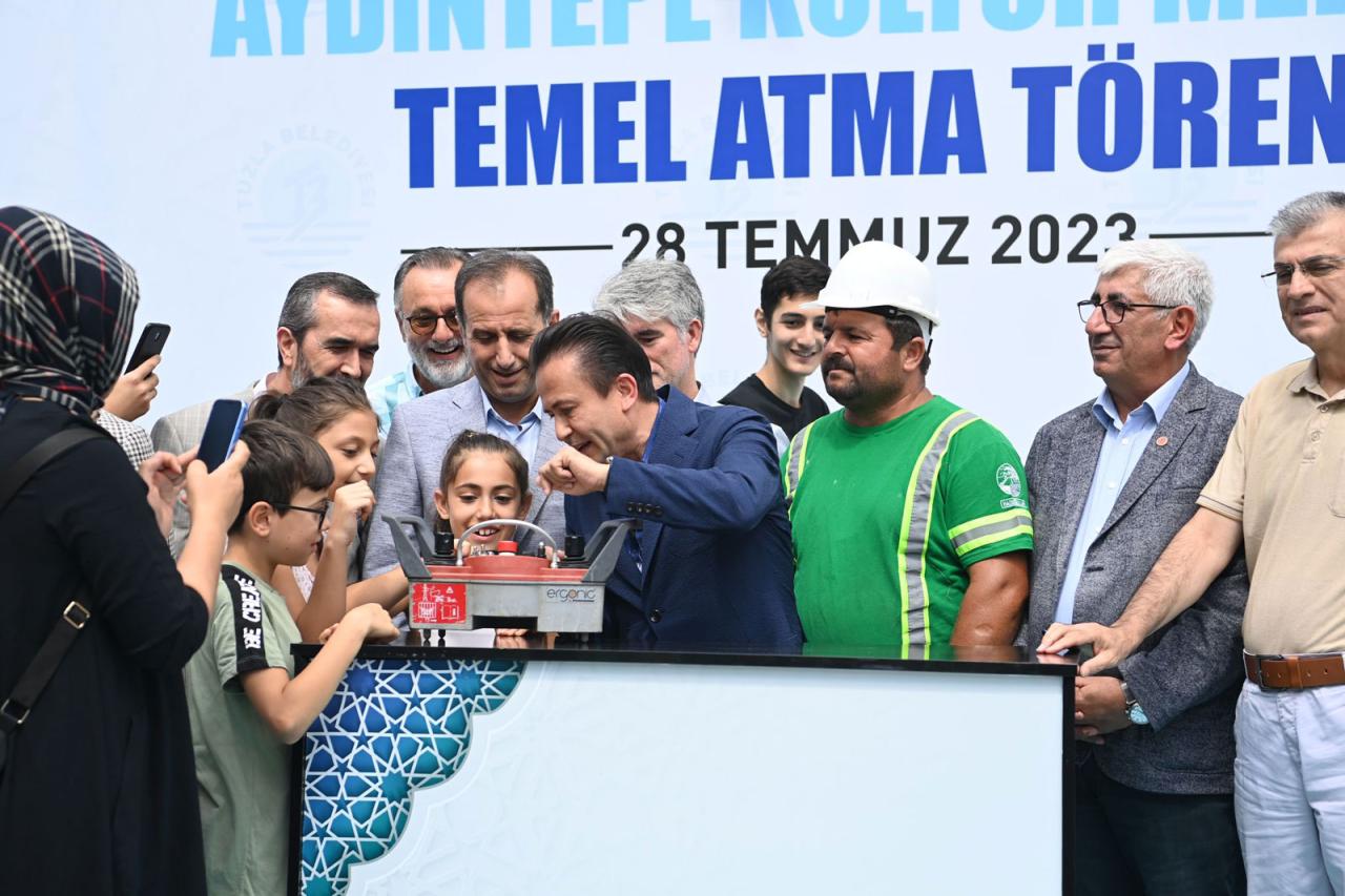 Tuzla Belediye Başkanı Dr. Şadi Yazıcı’nın 2019 yerel seçimleri öncesinde verdiği vaatler arasında yer alan ve Tuzla Belediyesi’nin ilçedeki 14’üncü kültür merkezi olacak olan Aydıntepe Kültür Merkezi’nin temeli atıldı. Temeli atılan kültür merkezinin içerisinde Tuzla Belediyesi’nin eğitim birimleri arasında yer alan Anne Çocuk Eğitim Merkezi ve Bilgi Evi’nin yanı sıra kütüphane ve çok amaçlı salon yer alacak. Aydıntepe’nin 100’üncü Yıl Caddesi üzerindeki temel atma törenine Tuzla Belediye Başkanı Dr. Şadi Yazıcı ile birlikte siyasi parti temsilcileri, meclis üyeleri, muhtarlar, sivil toplum kuruluşlarının temsilcileri, kamu kurum ve kuruluşlarının temsilcileri ile birlikte çok sayıda Aydıntepe Mahallesi sakinleri katıldı. Başkan Yazıcı, konuşmasının ardından Tuzlalı çocuklar ile birlikte ilk temel harcını dökecek olan butona bastılar. Daha sonra inşaat alanında çalışmalar hakkında bilgi alan Başkan Yazıcı, Aydıntepe Mahallesi sakinleri ile sohbet etti.