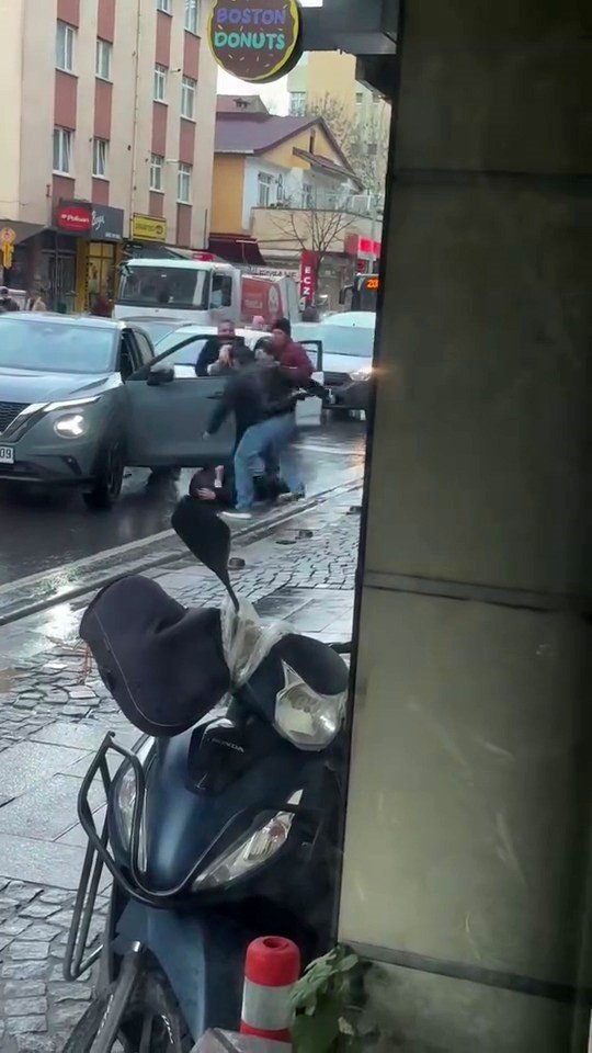 Ümraniye'de park yeri yüzünden çıkan kavgada 3 kişi sürücüyü tekme ve yumruklarla darp etti. O anlar cep telefonu kamerasına yansıdı.