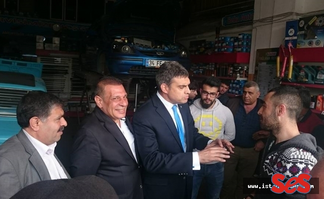 Umut Oran, ve beraberindekiler, Sanko Sanayi Sitesini Ziyaret etti 16 Nisan tarihinde yapılacak referandumda, "Hayır" yönünde oy kullanmaları için esnaftan destek istedi.