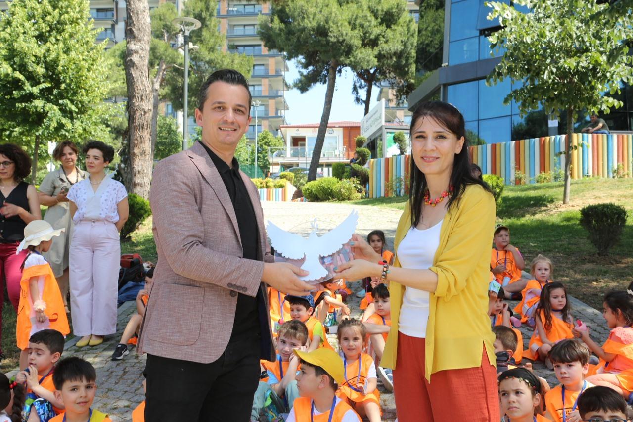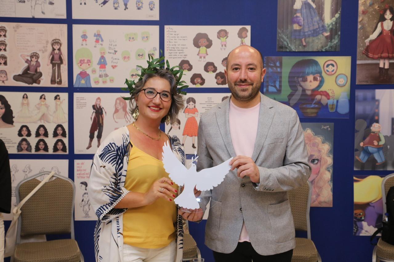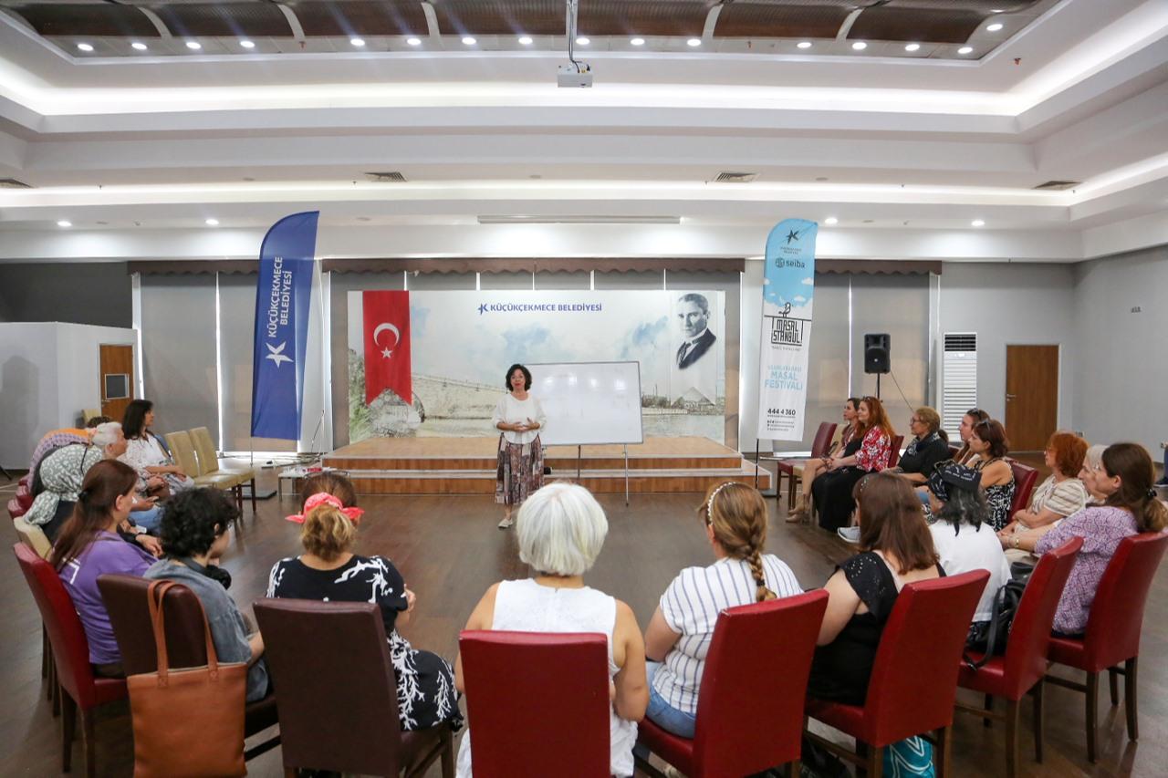 Programa katılan Küçükçekmece Belediyesi Kültür ve Sosyal İşler Müdürü Deniz Gürbey, masal anlatıcılarına barışı simgeleyen beyaz güvercin ve zeytin dalı temalı plaket takdim etti.