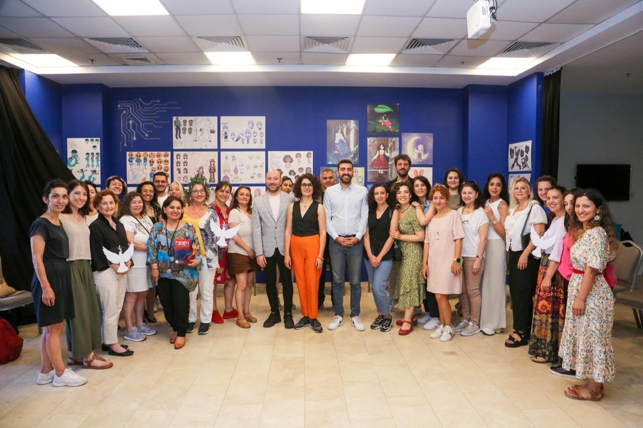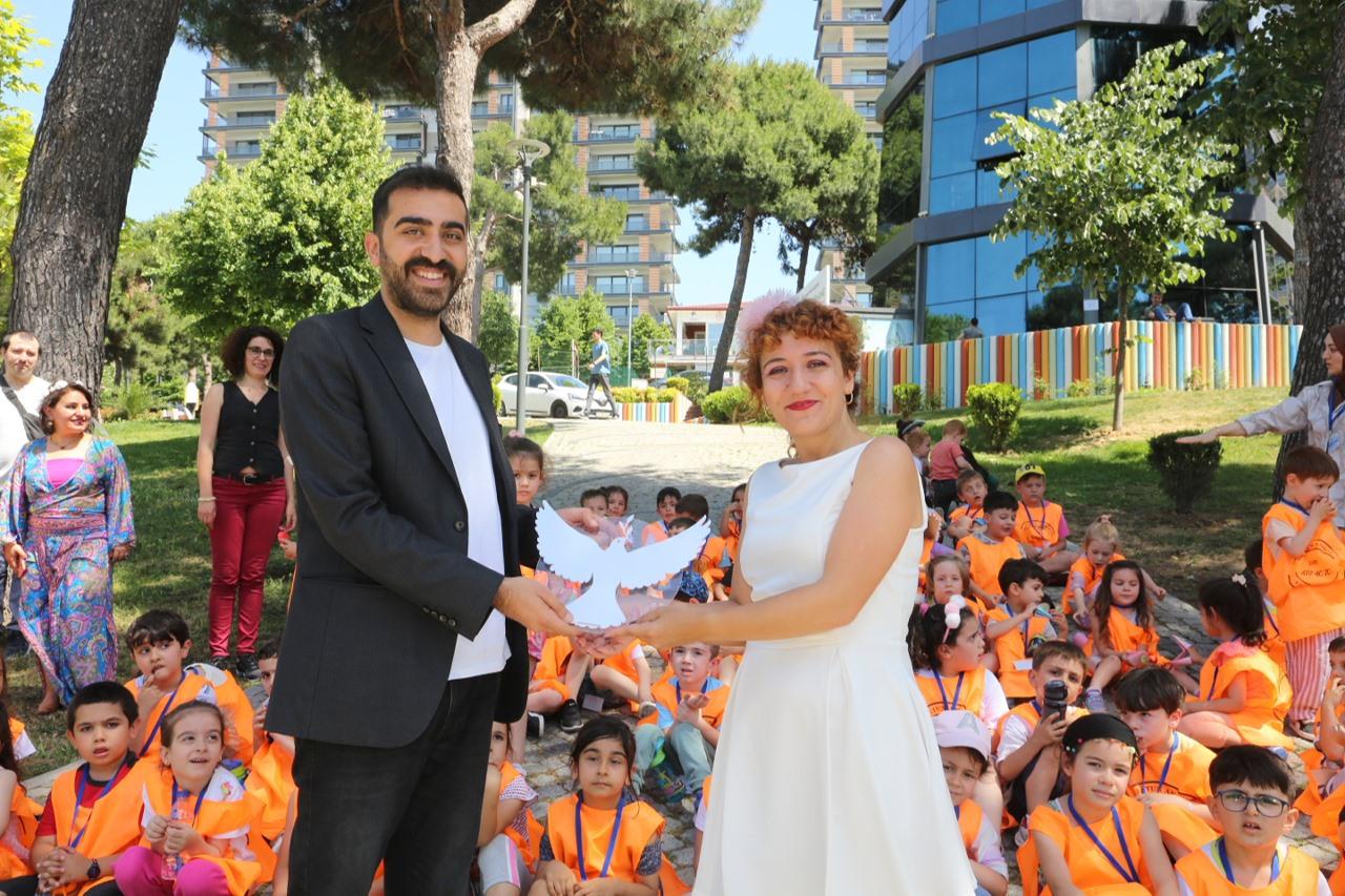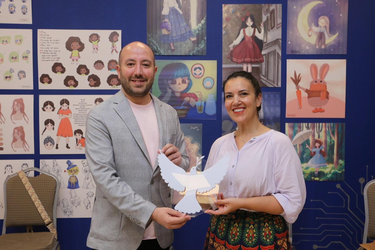 Programa katılan Küçükçekmece Belediyesi Kültür ve Sosyal İşler Müdürü Deniz Gürbey, masal anlatıcılarına barışı simgeleyen beyaz güvercin ve zeytin dalı temalı plaket takdim etti.