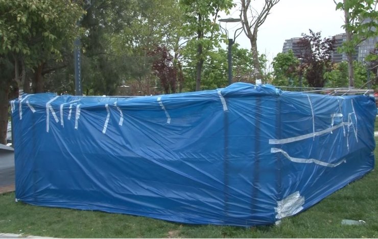 İstanbul'da dün yaşanan depremlerin ardından vatandaşlar geceyi Kuleli Parkı'nda kurduğu çadırlarda geçirdi. Bir kişinin de soğuktan korunmak için kendine naylondan çadır yaptığı görülürken, park havdan görüntülendi.