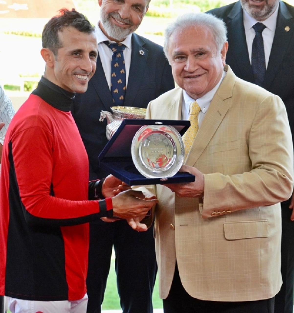 Yönetim Kurulu Üyemiz Yüksel Göktürk kazanan safkanın jokeyi Gökhan Kocakaya'ya plaket verdi.