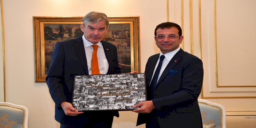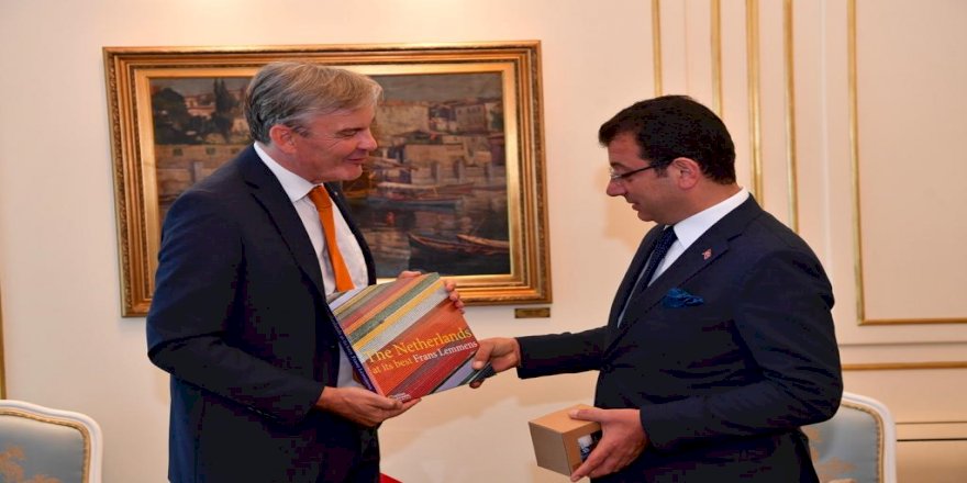 Bolhuis, sözünü ettiği resepsiyonda İmamoğlu ile çekilmiş kart baskı fotoğrafı İBB Başkanı'na hediye etti.