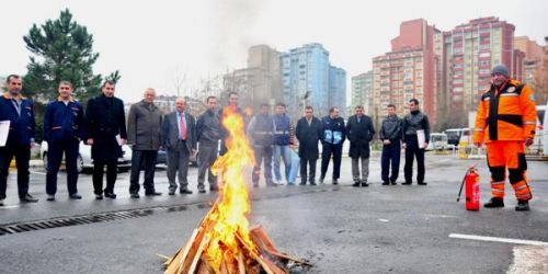 Yangın tüpü ile yangına müdahale eğitimi