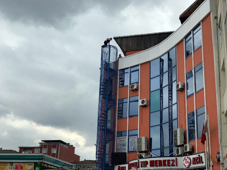 Yangın merdiveninin tepesinde korkutan intihar teşebbüsü