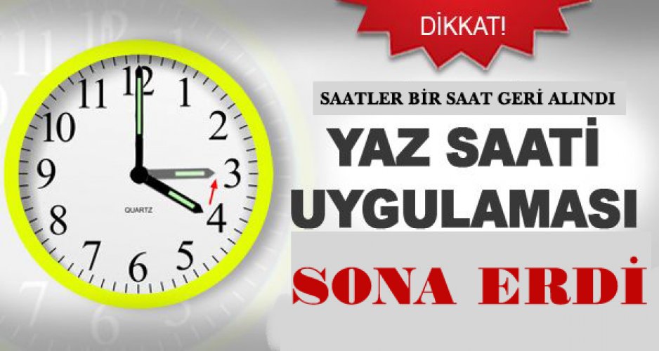 Gün ışığından daha fazla yararlanmak amacıyla 31 Mart Pazartesi günü 03.00'ten itibaren 60 dakika ileri alındı. Yaz saati uygulamasının sona ermesiyle saatler bu yıl ise 26 Ekim'de 04.00'ten itibaren 60 dakika geri alındı.