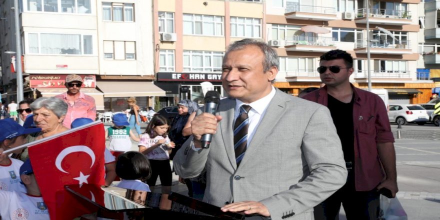 Silivri Belediye Başkanı Volkan Yılmaz törende bir konuşma yaparak mutlu çocuk vurgusunda bulundu. Başkan Yılmaz konuşmasında, “Silivri Belediye Başkanlığı olarak, İlçe Milli Eğitim Müdürlüğümüz, İlçe Spor Müdürlüğümüz ve Halk Eğitim Müdürlüğümüz ile ortaklaşa olarak yaptığımız protokol çerçevesinde, 6-16 yaş arasındaki çocuklarımızı ücretsiz Yaz Spor Okulları’nda bir araya getiriyoruz. 2200’e yakın öğrencimiz, 27 spor hocamızla Silivri merkez ve beldelerimizde Yaz Spor Okulları’nı bugünden itibaren başlattık. Çocuklarımıza bakıyorum; gözlerindeki ışıltıya, pırıltıya, yüzlerindeki gülümsemeye… Yola çıkarken ‘mutlu çocuk’ dedik. Mutlu çocuklar için kültür, sanat, spor demeye inatla devam edeceğiz. Spor ile sizi destekleyecek, hep yanınızda olacağız. İnşallah bir sonraki yıl kapsamını genişleterek ve 2200 öğrenciyi 10 bine yaklaştırarak daha fazla katkı sağlayacağız. Buradaki tüm çocuklarımızın gözlerinden öpüyorum. Bütün gençlerimize, geleceğin teminatı olan çocuklarımıza, ısrarla sporun içinde olmaları, kötü alışkanlıklardan uzak durmalarını öğütlüyorum. Bu kursların bir kısmına gelip ben de sizinle beraber spor yapacağım. Hepinize spor dolu bir yaz diliyorum” dedi.
