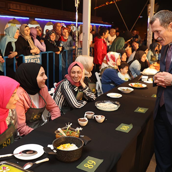 Zeytinburnu Belediye Başkanı Ömer Arısoy, “Bu akşam 23. Merkezefendi Geleneksel Tıp Festivali’mizin Yöresel Yemek Yarışmasındayız. Çok yoğun bir ilgi var. İki yıllık pandemi arasının ardından anlaşılan hünerli hanımlar özlemişler bu yarışmaya katılmayı. 175 yarışmacı şuanda hazır. Birazdan birbirinden önemli jüri üyelerimiz yemekleri gezecekler ve birini seçmeye çalışacaklar. Bana sorarsanız buraya katılanların hepsi kazandı. Birazdan dolaşıp tüm yemekleri tatmayı düşünüyorum. Bizim burada yapmak istediğimiz şey yöresel lezzetlerin yeniden kazanılması, öğrenilmesi ve yaygınlaştırılması. Buna katkı veren bütün hemşerilerimize teşekkür ediyorum.” dedi.