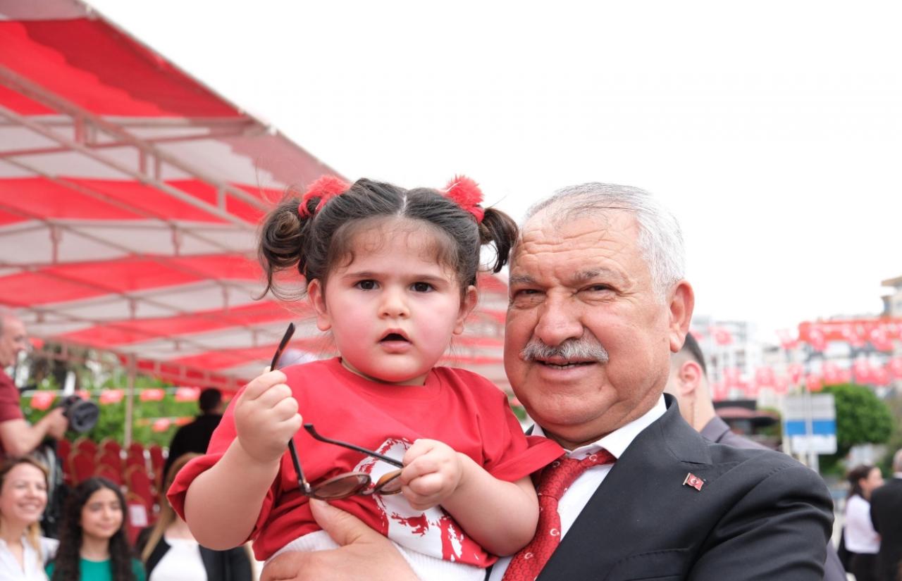 Mustafa Kemal Atatürk’ün Samsun’a çıkarak Milli Mücadele’yibaşlatmasına, 23 Nisan 1920’de TBMM’nin kurulmasına değinen minik başkan EzgiNeva Selçuk, Mustafa Kemal Atatürk’ün çocuklarla ilgili söylediği bazı sözleridile getirdi, çocukların ve milletin 23 Nisan Ulusal Egemenlik ve ÇocukBayramı’nı kutladı.