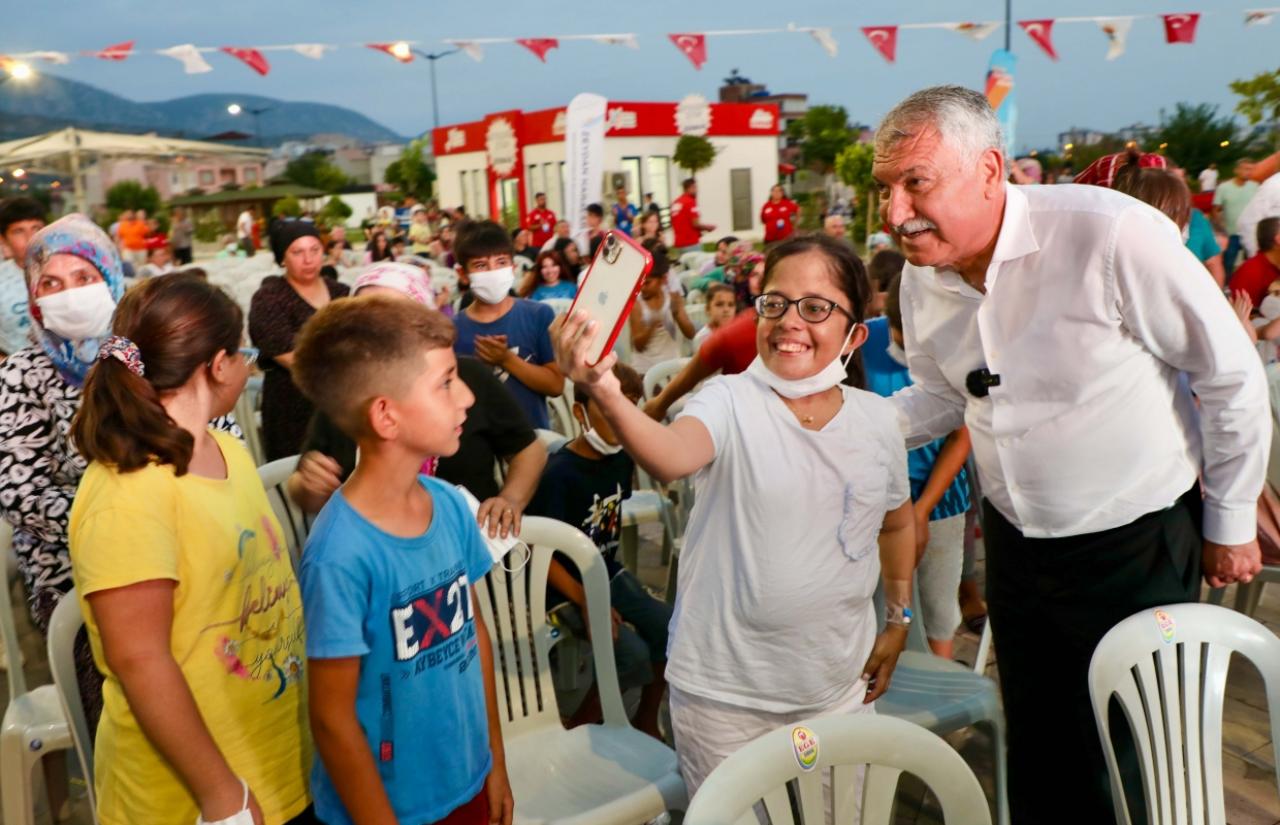 Başkan Zeydan Karalar sinema gösterimi sırasında halka kendielleriyle ikramda bulundu.