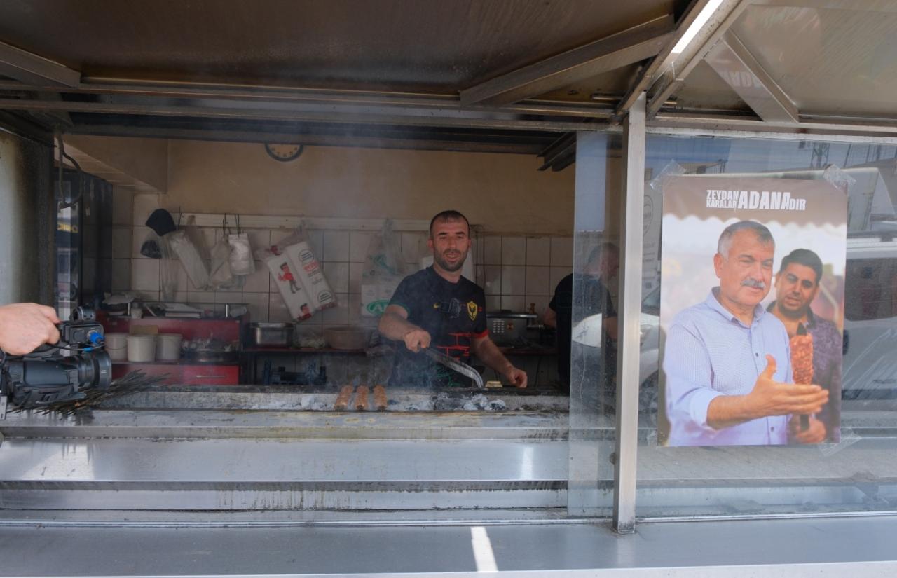 Kebapçıesnafı, iş yerlerine Zeydan Karalar’ın kebap yaparken çekilen fotoğraflarını,“Zeydan Karalar Adana’dır” mesajıyla birlikte asarak, belediye başkanlarınıyeniden aralarında görmek istediklerini söylediler.