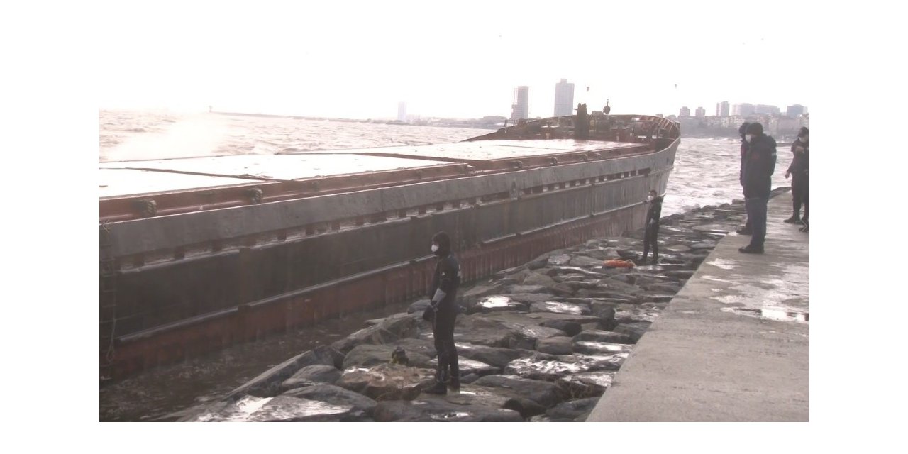 Zeytinburnu’nda Demirli Olan Gemi Fırtına Nedeniyle Karaya Oturdu