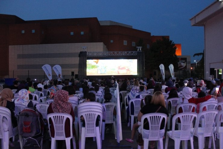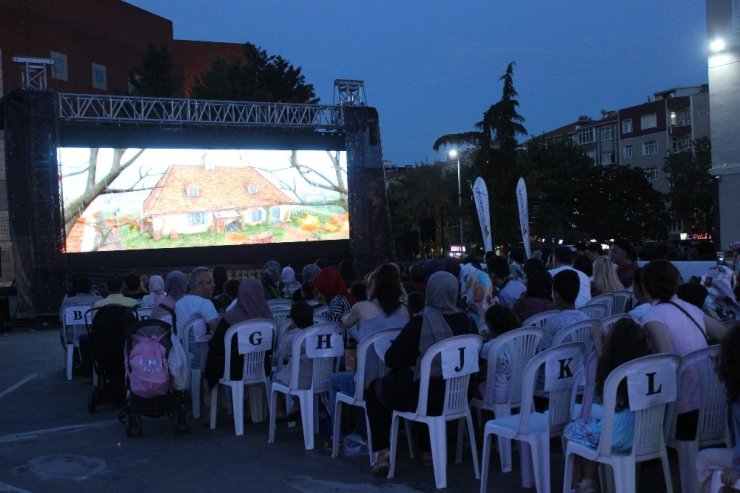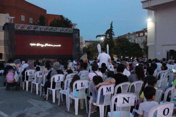 Zeytinburnu'nda 7'den 70'e tüm vatandaşlar gazoz ve mısır ikramıyla açık hava sinemasının tadını çıkardı.